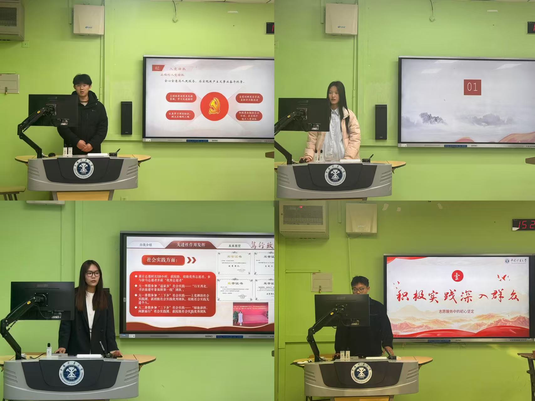 会上,各位发展对象同学通过PPT的形式,结合自身工作学习和生活实际,围绕预备期间的思想素质、学习工作、组织纪律以及自身存在的不足和努力方向等方面进行汇报答辩。展示结束后,评委们结合内容提问,引领大家深化对党员使命任务的理解,并提醒大家要持续提升思想觉悟与政治素养,在日常中自觉践行党的宗旨。