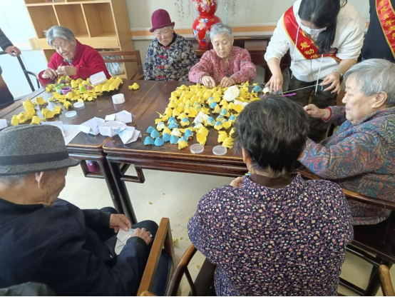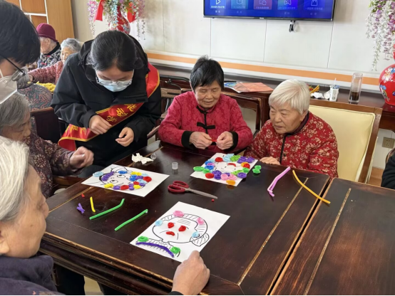 活动现场,志愿者们提前备好鸡蛋纸托盘、冰糕棒等废旧材料,与老人们一同动手创作:用鸡蛋纸托盘拼贴造型,用冰糕棒搭建小巧摆件,还以色彩鲜艳的扭扭棒在图纸上勾勒各式图案,共同完成了一件件手工作品。创作之余,志愿者们与老人们闲话家常,轻松的交流让养老院里满是温馨的氛围。