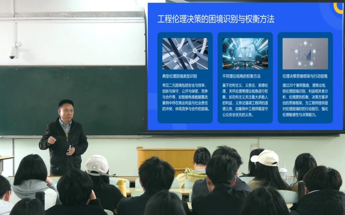 本次课程打破了传统理论教学与产业实践的壁垒,以案例研讨为核心,将行业一线的伦理实践场景深度融入课堂。授课内容贴合能源动力领域工程实际,逻辑清晰、案例鲜活、见解深刻,现场互动氛围热烈,教学成效显著。参会学生纷纷表示,通过本次课程,深刻认识到工程伦理在电力工程全生命周期中的重要价值,对能源工程师的社会责任与职业使命有了更具象、更深刻的理解,未来将在专业学习与工程实践中始终坚守伦理底线,做到技术能力与职业操守并重。