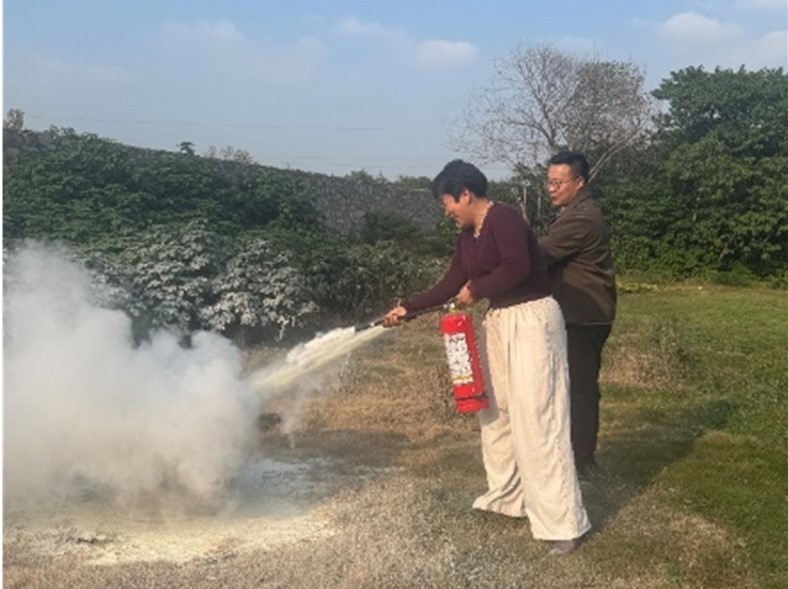 灭火演练时,学院实验室安全员卞丽丽老师亲自示范操作。同学们十人一组进行消防灭火演练。大家不仅熟悉了灭火器的基本使用方法,而且也切实提升了自身应对初期火灾的实操能力与应急处置水平。